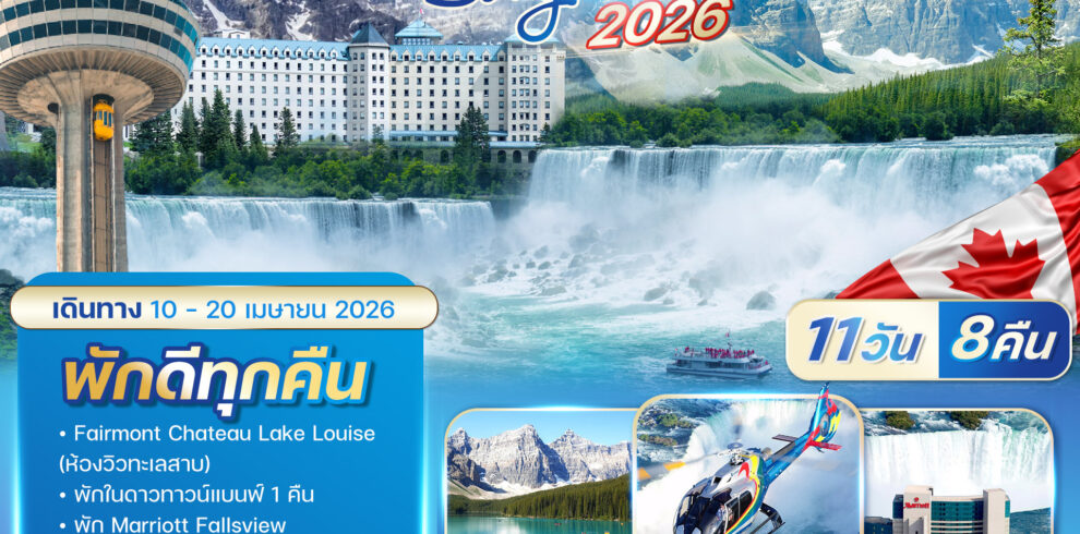10 วัน 6 คืน : พาเที่ยวชมน้ำตกไนแอการ่า – คิวเบกซววิตี้ – มอนทรีอัล พร้อมทั้งชมวิวแบบเต็มตาสุดลูกหูลูกตากับเทือกเขาร็อกกี้เมาเท่นและทะเลสาบหลุยส์