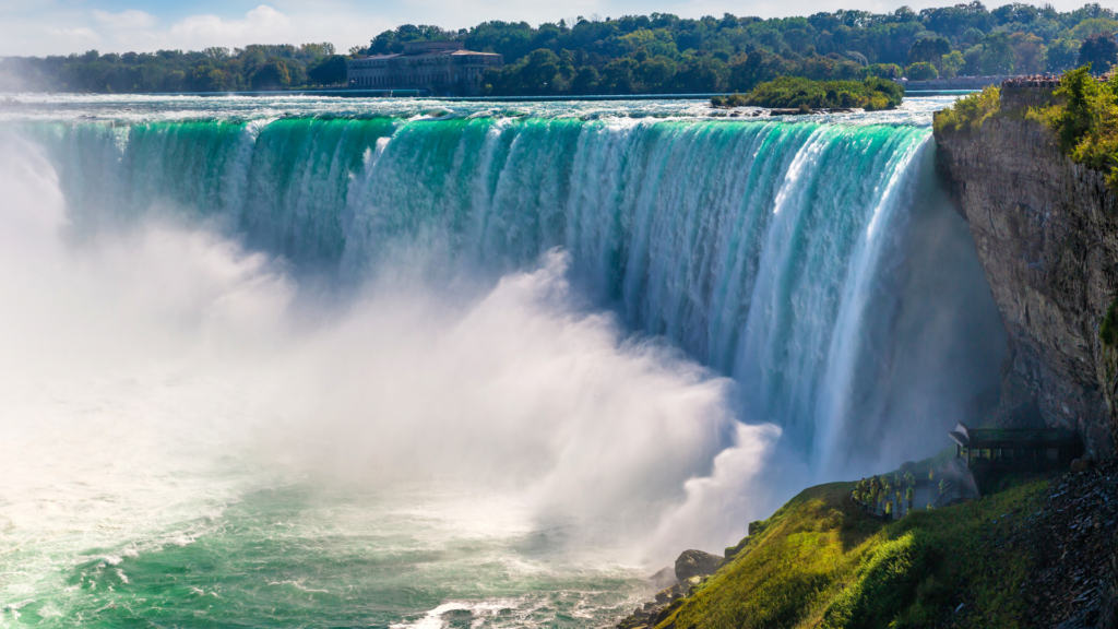 - ฤดูร้อน (มิถุนายน-สิงหาคม) – เป็นช่วงที่ได้รับความนิยมมากที่สุด อากาศอบอุ่น (อุณหภูมิประมาณ 20-30°C) เหมาะสำหรับการล่องเรือ City Cruise หรือเดินเล่นใน Queen Victoria Park น้ำในแม่น้ำไนแอการาจะมีสีเขียวมรกตที่สวยงาม เนื่องจากปริมาณน้ำที่ไหลแรงจากฤดูฝนและการละลายของหิมะ อย่างไรก็ตาม ช่วงนี้มีนักท่องเที่ยวจำนวนมาก