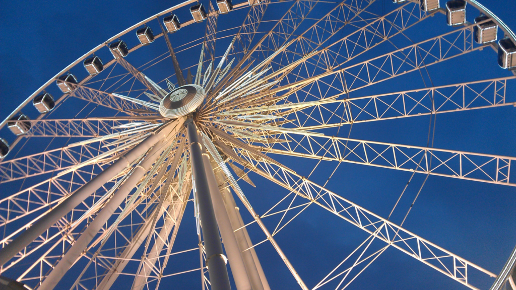 ชิงช้าสวรรค์ขนาดใหญ่ตั้งอยู่ในย่าน Clifton Hill ให้ทัศนียภาพแบบพาโนรามาของน้ำตกและเมืองโดยรอบ โดยเฉพาะในยามค่ำคืนที่น้ำตกมีการประดับไฟหลากสีสัน การนั่ง SkyWheel ใช้เวลาประมาณ 8-12 นาที เหมาะสำหรับครอบครัวและคู่รัก